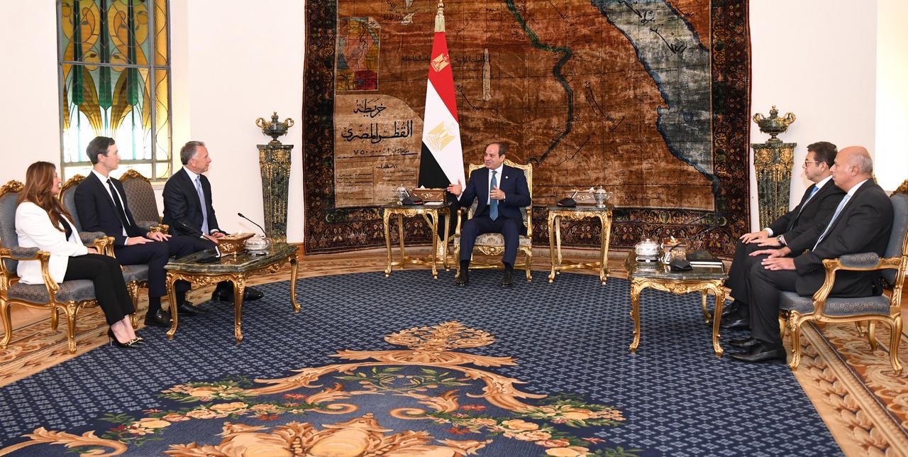 استقبل السيد الرئيس عبد الفتاح السيسي، اليوم في قصر الاتحادية، السيد/ ستيفن ويتكوف، المبعوث الخاص الأمريكي للشرق الأوسط، والسيد/ جاريد كوشنير كبير مستشاري رئيس الولايات المتحدة الأمريكية، موفدا الرئيس ترامب المشاركين في مفاوضات وقف إطلاق النار في قطاع غزة، وذلك بحضور السيد اللواء/ حسن رشاد، رئيس المخابرات العامة، والسفيرة/ هيرو مصطفى، سفيرة الولايات المتحدة الأمريكية بالقاهرة.