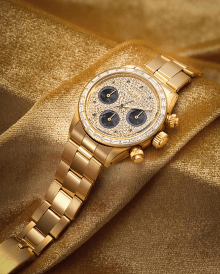 من المتوقع أن تُباع ساعة رولكس Cosmograph Daytonaالمصنوعة من الذهب الأصفر، والمزينة بإطار وقرص مرصّعين بالألماس وأرقام من الياقوت، والملقبة باسم The King، بمبلغ يتراوح بين 2 و4 ملايين دولار في مزاد الأسبوع المقبل.