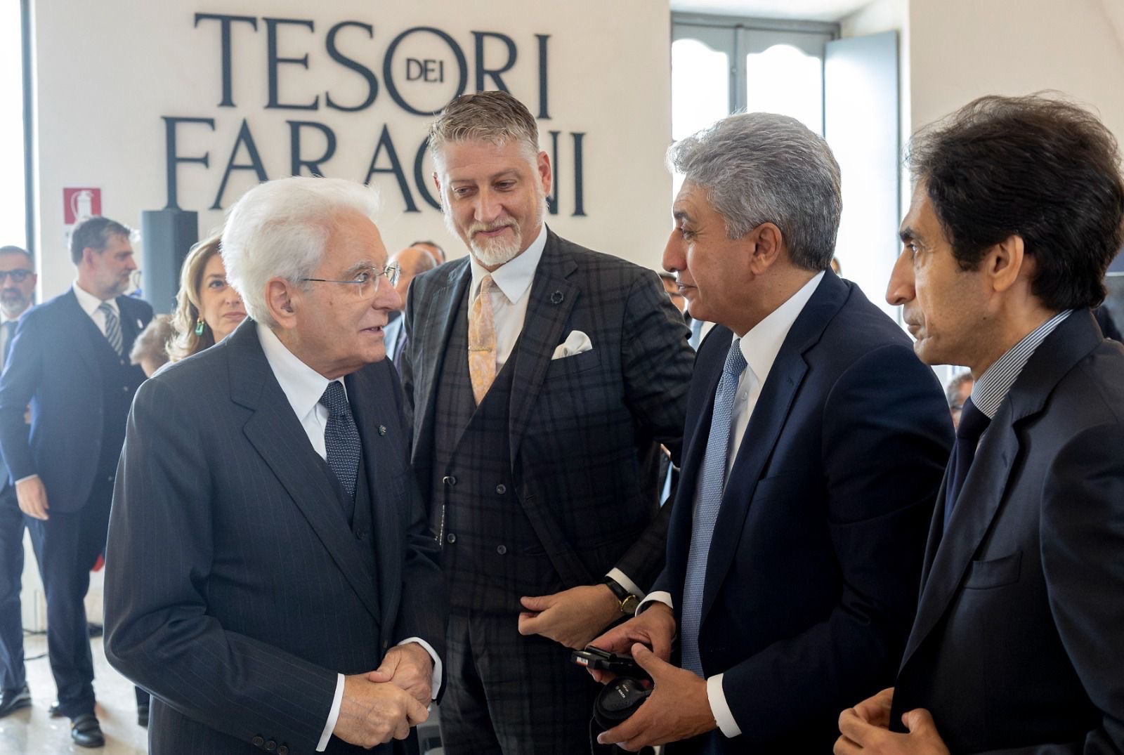 افتتح فخامة السيد سيرجيو ماتاريلا، رئيس جمهورية إيطاليا، معرض “كنوز الفراعنة” المقام بقاعة Scuderie del Quirinale التابعة لمؤسسة الرئاسة الإيطالية في العاصمة روما، وذلك بحضور السيد شريف فتحي وزير السياحة والآثار المصري، والسيد أليسندرو جولي وزير الثقافة الإيطالي، والسفير بسام راضي سفير مصر لدى إيطاليا، والدكتور محمد إسماعيل خالد الأمين العام للمجلس الأعلى للآثار، والدكتور محمد شعبان معاون وزير السياحة والآثار للتحول الرقمي، والدكتور طارق العوضي المشرف علي المعرض
